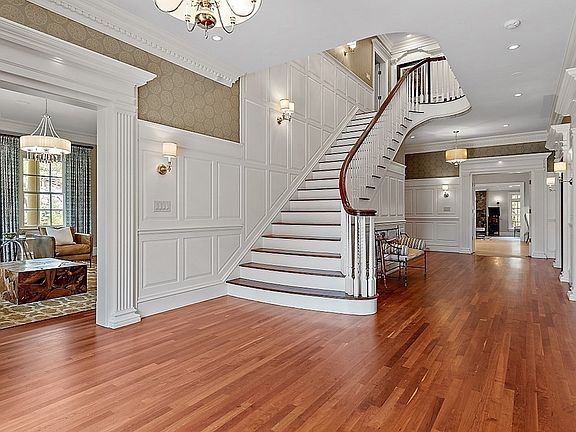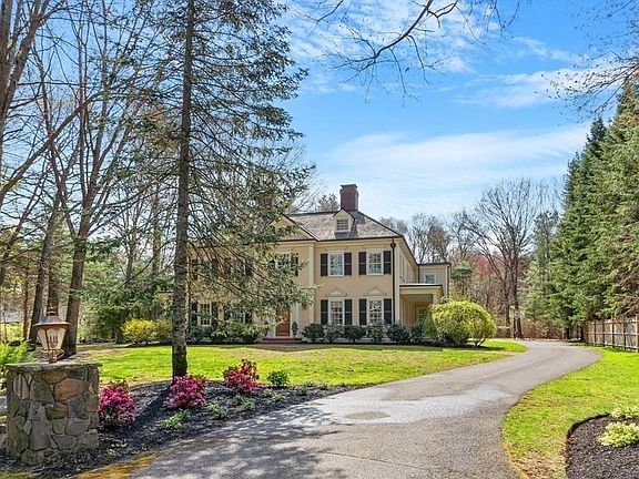 A winding driveway accented with stone pillars leads to this masterfully crafted and updated classic Georgian Colonial privately sited and beautifully landscaped offering the utmost in gracious modern living. 13 spacious rooms are resplendent w/magnificent details and character throughout creating an atmosphere of sophistication and luxury. The gourmet kitchen is any chef's dream with adjacent breakfast room showcasing views of the backyard. Family room w/handsome stone fireplace and pretty French doors leading to the outdoor deck makes it a perfect place to unwind. 1st floor office w/fireplace is a wonderful work-from-home space and mahogany billiard room w/coffered ceiling and fireplace was built for fun times! Upstairs are 5 BRs each w/ensuite including a luxurious primary w/walk-in closets, serene spa bath, private sitting room and a roof deck. Lower level finds a new home theatre w/seating for 10, a game room, gym room, full bath and workshop space. The ultimate lifestyle awaits!