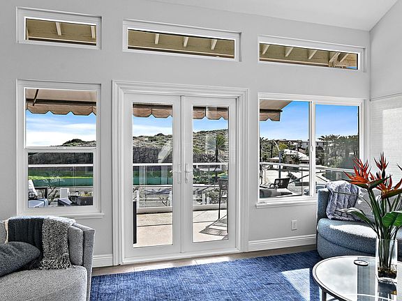 Ocean view home on front row overlooking the harbor and bay with sunrise & sunset from the family room, deck and yard. (Pictures do not show how close you are to the water) Remodeled and fully furnished in 2022 and located in the gated community of Regatta. Open floor plan with indoor/outdoor living on large ocean view deck and back yard. All new furniture, sonos system throughout home and everything you need, just bring you clothes. The large master suite is completely private and the guest bedroom with queen size bed has an ocean view. The third bedroom can be an office or bedroom. The community has a pool, spa and gated entrance. 2 car garage with driveway. Four minutes by bike or car from the lantern district restaurants or the strands beach or 7 minutes to the harbor. Pets welcome with $100 per month pet rent. Home is ready for a 60 Day minimum term beginning in August.