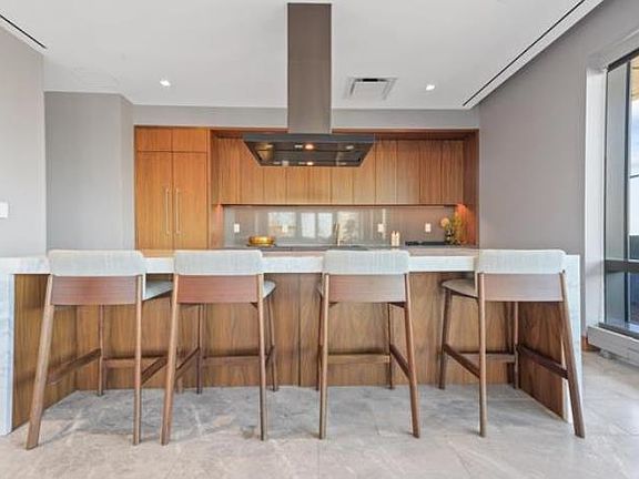 Unit 605 is a rare corner residence featuring a 365 sq ft private outdoor terrace, perfect for entertaining or simply enjoying panoramic views. Unique to corner units, the home is wrapped in floor-to-ceiling windows, filling the space with natural light and offering unobstructed views of the Hudson River and Manhattan skyline. The kitchen exhaust fan vents directly outside a rare and valuable feature and the home is ideally situated adjacent to the building's putting green, blending nature with city living. Every detail in this ultra-luxury home has been curated for elevated living. The kitchen is outfitted with Madreperola Quartzite countertops and a waterfall island, paired with a high-end Bosch appliance package and sleek custom millwork with satin nickel trim. The primary suite offers a spa-like retreat with Stellar White marble floors and walls, a frameless all-glass shower, and a custom vanity designed for both style and functionality. P&S is a statement of luxury, redefining waterfront living on Jersey City's Gold Coast. Residents enjoy unparalleled amenities, including: The only year-round indoor heated lap pool on the Jersey City waterfront A state-of-the-art fitness center, yoga room, spa, saunas, and steam rooms A stunning rooftop lounge with full prep kitchen and panoramic views of Midtown Manhattan Wine-tasting lounge with a private dining room for intimate gatherings Co-working spaces, a private conference room, and a multimedia lounge for live/work convenience Located in the heart of the vibrant Newport neighborhood, P&S offers unmatched connectivity with two PATH stations to Manhattan, NJ train lines, and walkable access to premier restaurants, luxury shopping, and the award-winning Newport Green Park and Beach. Live elevated. Live inspired. Welcome to P&S.