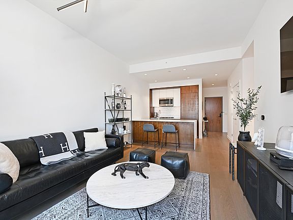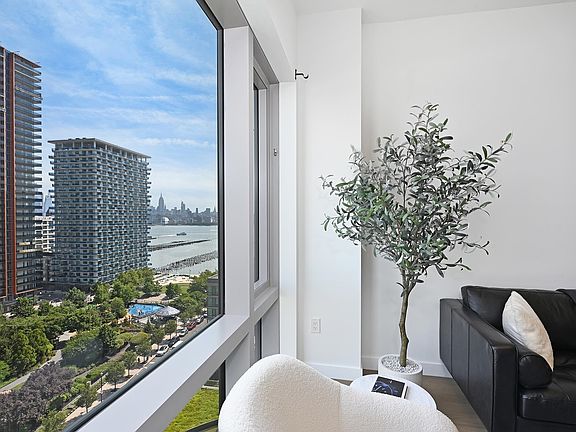 Experience luxury living at its finest in this immaculate and spacious one-bedroom new construction home, offering breathtaking views of Newport Green Park, NYC, and the Hudson River. Located on the coveted Northeast facing part of the building, residence 1203 exemplifies the pinnacle of urban living in this premier building.This designer-furnished unit features high ceilings, an open floor plan, floor-to-ceiling windows that flood the space with natural light, hardwood floors, custom window treatments, in-unit washer dryer, and fully custom designed closets.The gourmet kitchen has a Madreperola Quartzite countertop and waterfall island, top-of-the-line Bosch appliances, and custom walnut cabinetry with satin nickel trim. The primary bedroom offers the same panoramic views as the living room, along with a generously sized custom outfitted walk-in closet. The oversized marble bathroom includes a deep soaking tub and a meticulously crafted custom vanity. Discover the luxurious amenities at 75 Park Lane. Enjoy an indoor heated lap pool, teak-lined spa with steam rooms and sauna, fitness center with a yoga room, wine tasting lounge with private dining room, landscaped roof deck and sky lounge, co-working and conference spaces, kids playroom, outdoor putting green with NYC views, golf simulator room, game room, and multimedia lounge. Located between Newport PATH and Hoboken PATH stations, Park and Shore provides easy access to NYC. *Furniture pricing available upon request