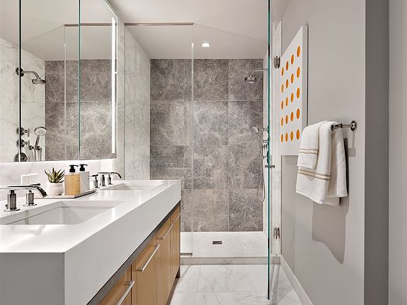Residence 1204 overlooks the serene, award-winning Newport Green Park with large windows letting in an abundance of light and offering unbeatable Hudson River and midtown Manhattan views. Features 10' ceilings, abundant closet space and spacious master bedroom with two built-in closets. Elegant chef’s kitchen equipped with gallery kitchen countertops, designed for both casual dining and entertaining. Located near the PATH train, on a flourishing park adjacent to the Hudson River waterfront in Jersey City’s vibrant Newport neighborhood, are the 358 custom-designed residences of 75 Park Lane. Comprised of spacious studios to oversized three bedrooms, state-of-the-art luxury penthouses with mid century artisan touches throughout and a welcoming porte cochere, 75 Park Lane is a warm & stylish addition to the Jersey City waterfront. Standing 37 stories high, this sanctuary in the sky offers its residents peace at home while watching the sunrise set against panoramic vistas. These intelligently crafted luxury condominiums are surrounded by light, air, green space and spectacular views of the Hudson River and Manhattan Skyline. Each residence features elegant chef’s kitchens, designed for both casual dining and entertaining, with Integral Bosch appliance package, undermount stainless steel sink, Madreperola Quartzite waterfall island and countertop, and millwork with satin nickel trim. The master baths are also thoughtfully designed with clean lines, precise craftsmanship, Stellar White marble floors and walls, frameless all-glass shower and custom vanity. The impressive features of 75 Park Lane also include in-unit washer/dryers, adjustable central A/C and a suite of smart home features including keyless entry. Whether it’s work or play, 75 Park Lane’s amenities create a homeowner’s paradise with an indoor heated lap pool and adjacent fitness center, complete with yoga room, teak-line Spa, steam rooms and saunas. Its wine tasting lounge with a private dining room sits next to a co-working space, private conference room, and multimedia lounge for movie nights or karaoke. A favorite of golf enthusiasts is the sixth floor putting green set against panoramic views of Midtown Manhattan and Newport Green Park. The sky lounge, a landscaped rooftop lounge and dining area with a full prep kitchen, makes a tranquil place for you to unwind or host large gatherings of friends.