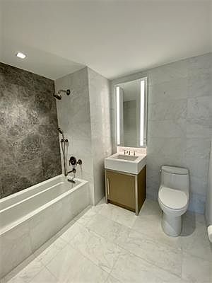 75 Park South is one of the most luxurious new construction amenity building in Jersey City. The amenities include an indoor heated lap pool, fitness center, complete with yoga room, teak-line Spa, and steam rooms, wine tasting lounge with a private dining room, a co-working space, private conference room, putting green set against panoramic views of Midtown Manhattan and Newport Green Park, sky lounge, a landscaped rooftop lounge and dining area with a full prep kitchen, and a multi-media room. This sun-drenched one bedroom features an elegant chef's kitchens with a Bosch appliance package, an under-mount stainless steel sink, a Madreperola Quartzite waterfall island, and a countertop. The master bath is thoughtfully designed with clean lines, precise craftsmanship, Stellar White marble floors and walls, frameless all-glass shower, and custom vanity. Located near PATH, Light Rail, shopping, restaurants, and a beautiful park adjacent to the Hudson River waterfront in Jersey City's vibrant Newport neighborhood. Parking is available for an additional fee.