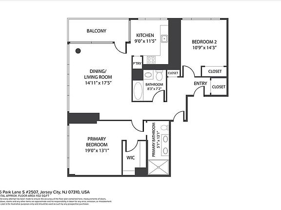 This 1161 square foot apartment home has 2 bedrooms and 2.0 bathrooms. This home is located at 75 Park Ln S APT 2507, Jersey City, NJ 07310.