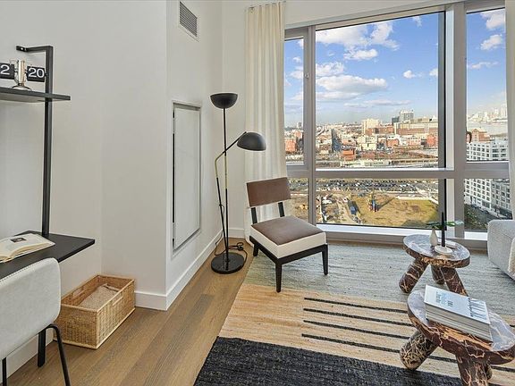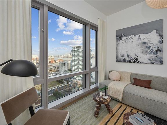Residence 705 is the LAST REMAINING STUDIO. Featuring a state-of-the-art kitchen and separate living room, as well as a spacious bathroom for a studio. Overlooks Newport Green Park with breathtaking views of the Manhattan landmark buildings. Situated between two PATH terminals, amidst the lush greenery of a thriving park along the Hudson River waterfront in the vibrant Newport neighborhood of Jersey City, you'll discover 75 Park Lane—a collection of 358 custom-designed residences. These homes range from spacious studios to generously sized three-bedroom units, as well as state-of-the-art luxury penthouses adorned with mid-century artisanal touches. The property also boasts a welcoming porte cochère, making 75 Park Lane a warm and stylish addition to Jersey City's waterfront. Soaring 37 stories high, this skyward sanctuary offers residents a tranquil retreat while enjoying breathtaking sunrise views against a backdrop of panoramic vistas. These intelligently crafted luxury condos are enveloped in natural light, fresh air, lush green surroundings, and stunning vistas of the Hudson River and the Manhattan skyline. Each residence features an elegant chef's kitchen, perfect for both casual dining and entertaining, complete with an Integral Bosch appliance package, undermount stainless steel sink, Madreperola Quartzite waterfall island and countertops, and millwork finished with satin nickel trim. The master bathrooms are equally well-considered, showcasing clean lines, impeccable craftsmanship, Stellar White marble floors and walls, frameless all-glass showers, and custom vanities. Additional impressive features of 75 Park Lane include in-unit washer/dryers, adjustable central A/C, and a suite of smart home features, including keyless entry. Whether you're focused on work or leisure, 75 Park Lane's amenities create a homeowner's paradise. An indoor heated lap pool and adjoining fitness center, complete with a yoga room and a teak-lined spa with steam rooms, cater to your wellness needs. The property also offers a wine tasting lounge with a private dining room, adjacent to a co-working space, a private conference room, and a multimedia lounge for movie nights or karaoke sessions. Golf enthusiasts will adore the sixth-floor putting green, which offers sweeping views of Midtown Manhattan and Newport Green Park. And for moments of relaxation or hosting large gatherings with friends, the sky lounge, a landscaped rooftop lounge and dining area equipped with a full prep kitchen, provides a serene escape.