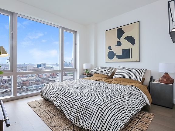 3001 is a sumptuous two bedroom located in the north-western corner with double exhibits. Enjoy views of the Hudson River and midtown Manhattan from private balcony. Efficient space designed with an alcove kitchen provides a floating kitchen island and exhaust vent. Comprised of spacious studios to oversized three bedrooms, state-of-the-art luxury penthouses with mid century artisan touches throughout and a welcoming porte cochere, 75 Park Lane is a warm & stylish addition to the Jersey City waterfront. Standing 37 stories high, this sanctuary in the sky offers its residents peace at home while watching the sunrise set against panoramic vistas. The impressive features of 75 Park Lane also include in-unit washer/dryers, adjustable central A/C and a suite of smart home features including keyless entry. Whether it's work or play, 75 Park Lane's amenities create a homeowners paradise with an indoor heated lap pool and adjacent fitness center, complete with yoga room, teak-line Spa and saunas, and a landscaped rooftop lounge and dining area with a full prep kitchen.
