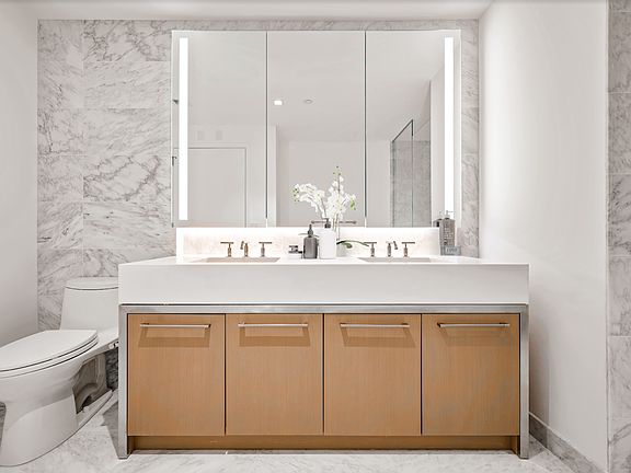 Simply the best 3BR/3BA offered in Jersey City waterfront new development. Northeast corner with double exposures and enjoy panoramic Hudson River and Manhattan views from private balcony. Features split style bedrooms with guest en-suite and oversized guest bedroom. Views from every room. Abundant closets for storage needs and chef's kitchen with pantry. Ready for immediate occupancy.Located between two PATH terminals, on a flourishing park adjacent to the Hudson River waterfront in Jersey City's vibrant Newport neighborhood, are the 358 custom-designed residences of 75 Park Lane. Comprised of spacious studios to oversized three bedrooms, state-of-the-art luxury penthouses with mid century artisan touches throughout and a welcoming porte cochere, 75 Park Lane is a warm & stylish addition to the Jersey City waterfront. These intelligently crafted luxury condominiums are surrounded by light, air, green space and spectacular views of the Hudson River and Manhattan Skyline. Each residence features elegant chefs kitchens, designed for both casual dining and entertaining, with Integral Bosch appliance package, undermount stainless steel sink, Madreperola Quartzite waterfall island and countertop, and millwork with satin nickel trim. The master baths are also thoughtfully designed with clean lines, precise craftsmanship, Stellar White marble floors and walls, frameless all-glass shower and custom vanity.