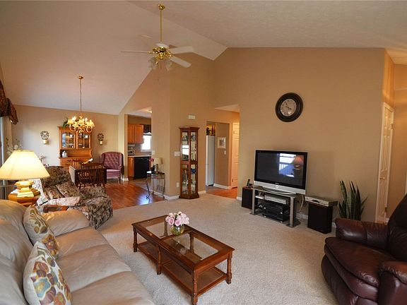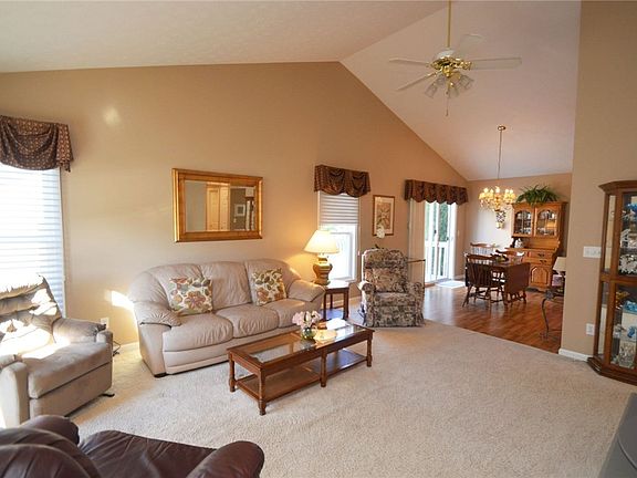 Patio home in English Square. 55+ Community. 2 bedroom, 2 baths, cathedral ceiling in living room and dining room. All drapes, valances and appliance to stay. Master bedroom has ceiling fan and walk-in closet. Hot water heater 9/2015. 1st floor laundry. Finished room in basement.