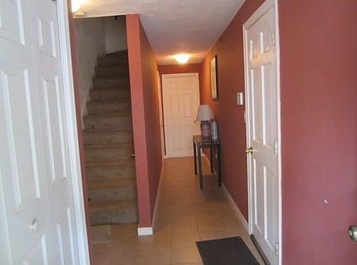 Carter Green Townhome features large living room with new slider to balcony. Separate dining room opens to convenient kitchen and tile floors in kitchen & baths. Dining room has laminate floors as does the master bedroom. Appliances include new stove, dishwasher, disposal. Master bedroom and 2nd bedroom feature plenty of closet space and bathroom connects to both bedrooms. 1 car under garage and basement storage plus 1 parking space. Four new bedroom windows and balcony redone and new roof and vinyl siding has been done. HVAC and hot water heater have recently been replaced with new equipment. Upstairs bathroom recently renovated with new fixtures and furnishings. Close to RTE 93 and 495, shopping and trains.