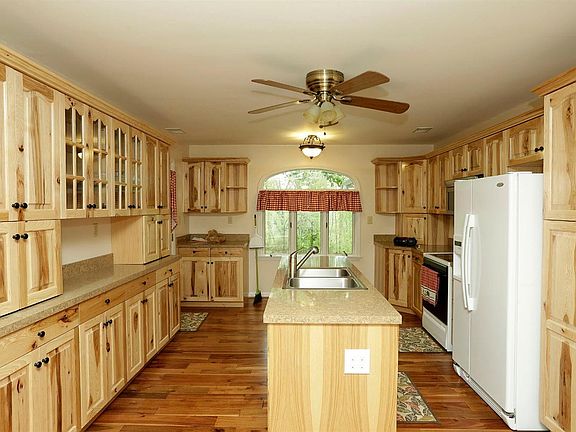 Beautiful country home offering plenty of privacy and seclusion! This property offers so much including an expansive kitchen with gorgeous, custom made, hickory cabinetry, roomy GR with hardwood flooring, oak fireplace with gas logs and wood burning stove in LR and formal DR for ease of entertaining. Other amenities include newer carpeting, paint, exterior doors & windows, concrete patio, dimensional shingles, HVAC & water heater. Pull down stairs in home and garage attics both partially floored for abundant storage space. All nestled on over 7 acres with pond and mostly fenced, great place to relax! Also, a 20' x 40' workshop, great for any handyman or extra storage and a 12' x 18' shed. Must see! Sellers are offering a home warranty to any buyer at closing!