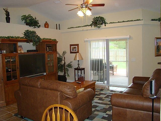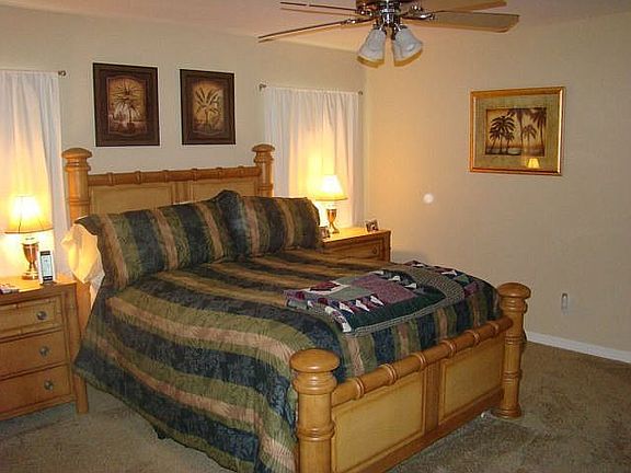 Full of Surprises, from the wonder open flowing floor plan to the custom features throughout. With tile floors in the living area, plant shelves, Cathedral ceilings & wood cabinets in the beautiful kitchen. Amazing floor plan feels so much bigger with generous nook and dining area, opens to screened Lanai. Big luxurious master suite w/ spa tub. walk in shower double vanity & huge walk in closet. Sitting on a groomed lot backing up to natural wooden area, providing lots of privacy. Solid built w/ (poured) concrete walls. AC replaced 2016, Move in Ready!