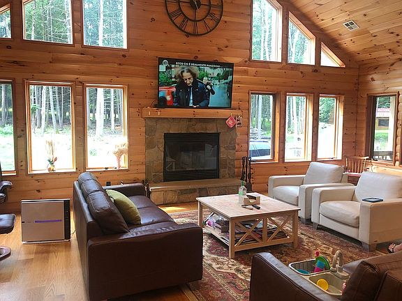 New custom chalet style home. Built in 2017. Radiant heat floor with Nest thermostats. 16 feet high ceiling in great room and 9 foot ceilings everywhere else. Custom solid wood doors, kitchen and vanities. Metal roof, smart lock, Nest camera system. Most furniture included. Text with any questions 917-578-8995 Additional photos here. https://drive.google.com/drive/folders/1-qYCOJTevF0TRrGfHrO23oKi3gzwIn4a