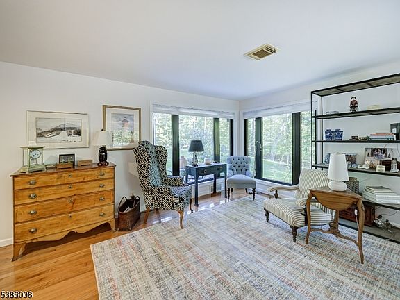 PRIVATELY SET ON 5.7 DELIGHTFUL ACRES overlooking the Wickecheoke Creek & adjoining nature preserve, this HANDSOMELY UPDATED mid-century ranch offers the peace & tranquility you've been longing for. Nicely elevated on a bluff high above the creek, the expansive paver-stone patio is perfect for outdoor entertaining or just relaxing to the sounds of nature. Nearby hiking trails are an added bonus. Notable mid-century architectural details such as the floor-to-ceiling stone walled FP & expansive windows are thoughtfully enhanced by modern updates that you'll be sure to appreciate. A generously sized Living & Dining area features hardwood floors and lots of natural daylight with views of the idyllic grounds. A window seat in the DR and nicely sized corner windows in the LR are of special note. The beautifully renovated chef's kitchen features top-of-the-line Wolf appliances, custom 42" cabinetry, recessed lighting, farmer's sink, subway tiled backsplash and granite counters. A luxuriously updated master bath offers a newer glass shower enclosure, custom tilework and elegant quartz topped vanity. The equally impressive 2nd full BA includes a marble topped double bowl vanity & subway tiled wainscotting. The convenience of 1-level living is yours to enjoy with everything you need, including the washer & dryer, on one floor! Extensive updates also include a new septic in 2018. Amidst towering trees and open lawns, this year-round retreat, will truly make you feel one with nature!