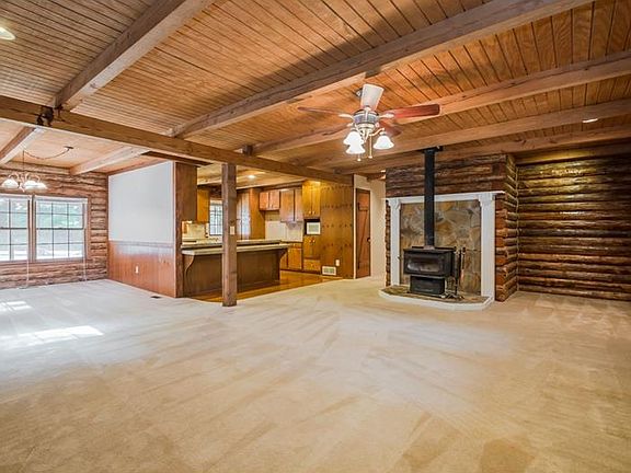 Love the rustic log cabin life, but want all the conveniences of Forsyth County? THIS IS IT! Immaculate, Move in Ready 3 bedroom,2 bathroom home w/ full unfinished basement, wrap around porch & FOUR car garage w/ room for a workshop! Sought after open floor plan w/ wood stove & exposed beams. Just 2 easy steps into this ranch home. 1 level living. 2 Full bathrooms - relaxing garden tub & oversized shower. Truly a unique treasure & on over an acre of land! Conveniently located near Sawnee Mountain, Cumming City Limits, Lake Lanier, 400, Shops & Dining.