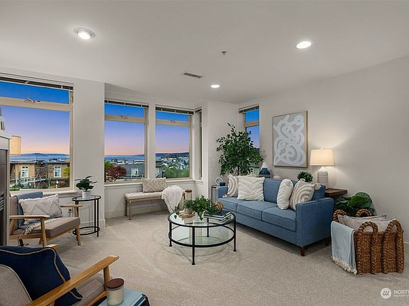 Views, Views, Views! Rare opportunity to own at the sophisticated & luxurious Point Edwards. Experience resort-style living w/ sweeping Puget Sound & mountain views while enjoying the iconic PNW sunsets from your private patio. This highly sought after end-unit floor plan boasts primary en-suite w/ walk-in closet, spacious guest bedroom w/ adjacent full bath & an office/flex space for hobbies. Gourmet kitchen features cherry cabinets, granite countertops & stainless steel appliances. Cozy up to the gas fireplace & let your worries melt away. TWO reserved parking spots in secure garage & additional storage unit included. 5-Star Amenities: Pools, Hot Tubs, Guest Suites, Clubhouses, Movie Theater, Exercise Room & more. Invest in view property!