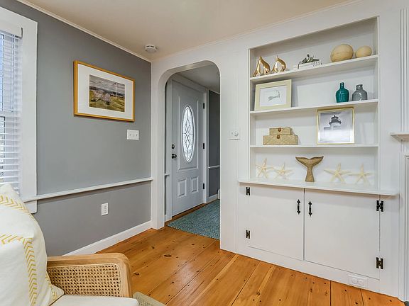 First-floor primary suiteOversized outdoor showerModern coastal feelOld-world charmCozy sitting nookWide plank hardwood floorsFenced yard