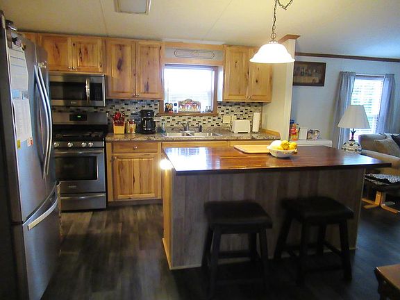 So many improvements have been done here in the last 2 years!This move in ready mobile home is located in the sought after Airport Seniors Community.The beautiful Kitchen has new cabinets,a large island,stainless steel appliances and combined with the Dining area, gives you a nice open concept feel.There's a new 11x13 3-season room with removeable upper windows which are screend to let in the fresh air and cute lower windows so your pets can see outside.The master is huge has it's own bathroom with walk in shower and large closet.Two additional bedrooms and a full bath complete the package.