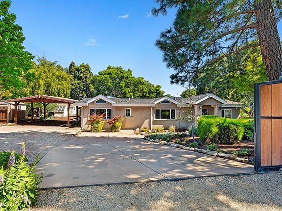 Tucked behind a private gate in the heart of Carmel Valley Village, this beautifully updated 3-bedroom, 2.5-bath home + office offers 2,040 sq ft of turnkey living on over a third of an acre. The flat, fully fenced lot is a park-like retreat with lush lawns, rose gardens, mature oaks, and serene mountain views create a tranquil escape just minutes from the Villages renowned tasting rooms, restaurants and parks. Designed for both relaxation and entertaining, the backyard boasts multiple patios, perfect for soaking up the sun or hosting gatherings. Inside, enjoy a spacious open floor plan with a chefs kitchen, open-beam ceilings, and central AC for year-round comfort. With thoughtful updates throughout and exceptional privacy, this home offers the best of Carmel Valley living. A true must-see!