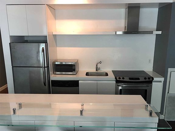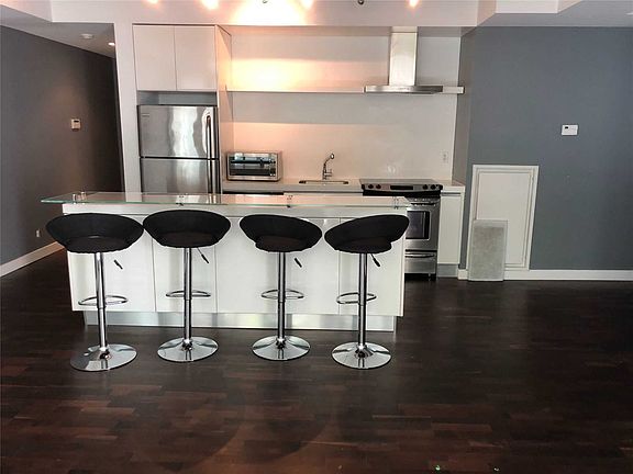 A Unique Boutique Loft With A Massive Private Terrace In The Philippe Starck Designed "75 Portland" (905 Sqft+300Sqft). Perfect For Entertaining! Designed For The Urban Professional With Exposed Concrete, Corian Counters, High Gloss Kitchen Cabinets, Large Island With Breakfast Counter & Engineered Hardwood Floors. Large Master Bedroom Boasts Ample Closet Space & A Minimalist Ensuite Washroom. Separate Powder Room For Guests. Parking & Locker Are Included.