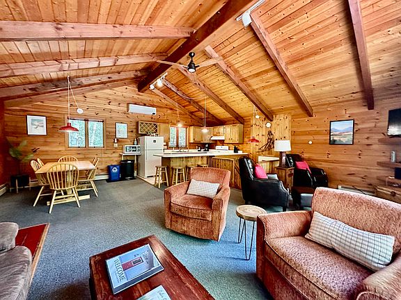 This well kept, Cozy chalet in the town of Bartlett has been loved by the current owners who are the third owners. It is being sold furnished minus a few personal items. This 3B,2BA home has a great open kitchen with an island to cook and chat with friends and family. The living room has natural wood cathedral ceilings and sliders to a private deck with views, wildlife and privacy abounding and plenty of room to expand. This home sleeps 10 comfortably and can accommodate all of your toys, skis, hiking gear and bicycles. The laundry room is a few steps away and hidden if desired. You will love the quiet, peaceful area, which is 5 miles to Attitash and Bear Peak ski resorts, Bretton Woods, Black Mountain, wildcat and other resorts are close by in and around Conway. If you love to shop and eat great food you are in the right place. Currently being used as a vacation rental (rental income available upon request) when not being used by the owners. There are many other features to see. New mini split added this year for AC, newer electric stove, new bathroom fixtures, and lots more. Come and look and see why they stayed so long and did not want to leave.