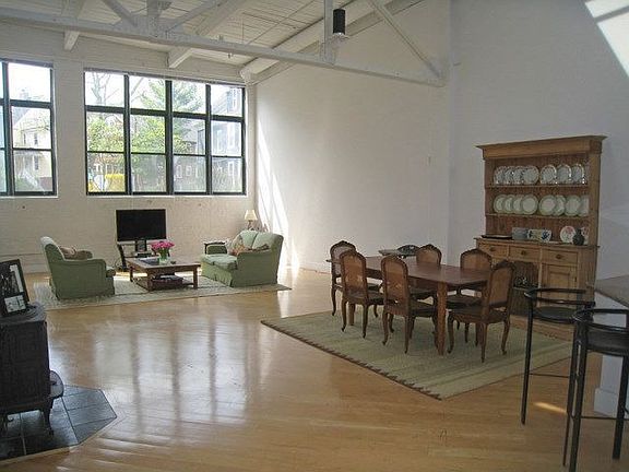 Carved out of a 1900's brick building home to The Payne Elevator Company - true artists loft w/ exposed wood rafters, metal beams, exposed brick, diagonally laid maple floors, wood stove & 3 skylights. Living/dining/kitchen granite counters, glass front cabinets & island with gas cook top. Bedroom w/ 9 window panels and en suite bath. Central air, second bath, in-unit laundry, common garden and parking.
