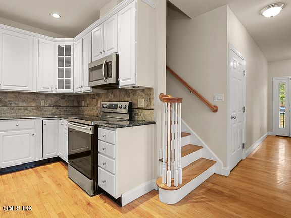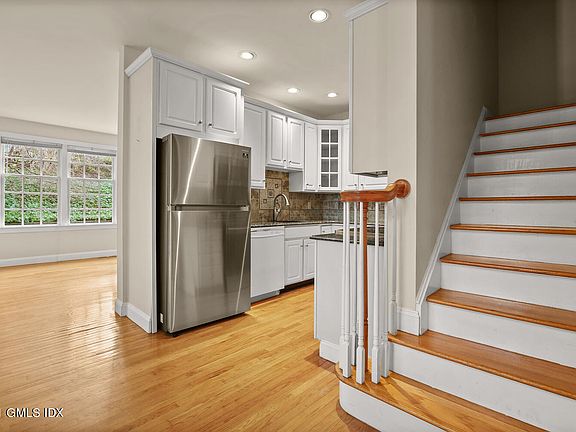 Sundrenched three-bedroom end unit Townhome offers turnkey, convenient living on four levels with an expansive deck and private patio. Just steps from school and close to shopping. Boasts rich hardwood floors, high ceilings and oversized windows. Main level provides granite-clad kitchen open to dining room with sliding doors to deck, spacious living room with bay window, fireplace, and powder room. Lovely master suite with walk-in closet, Jacuzzi tub and shower in bath; and comfortable en-suite bedroom comprise the second floor. Top floor reveals a roomy home office and large en-suite bedroom. Features a lower level family/playroom, laundry, and abundant storage. Attached one-car garage. Ideally located near both Port Chester and Greenwich trains station.