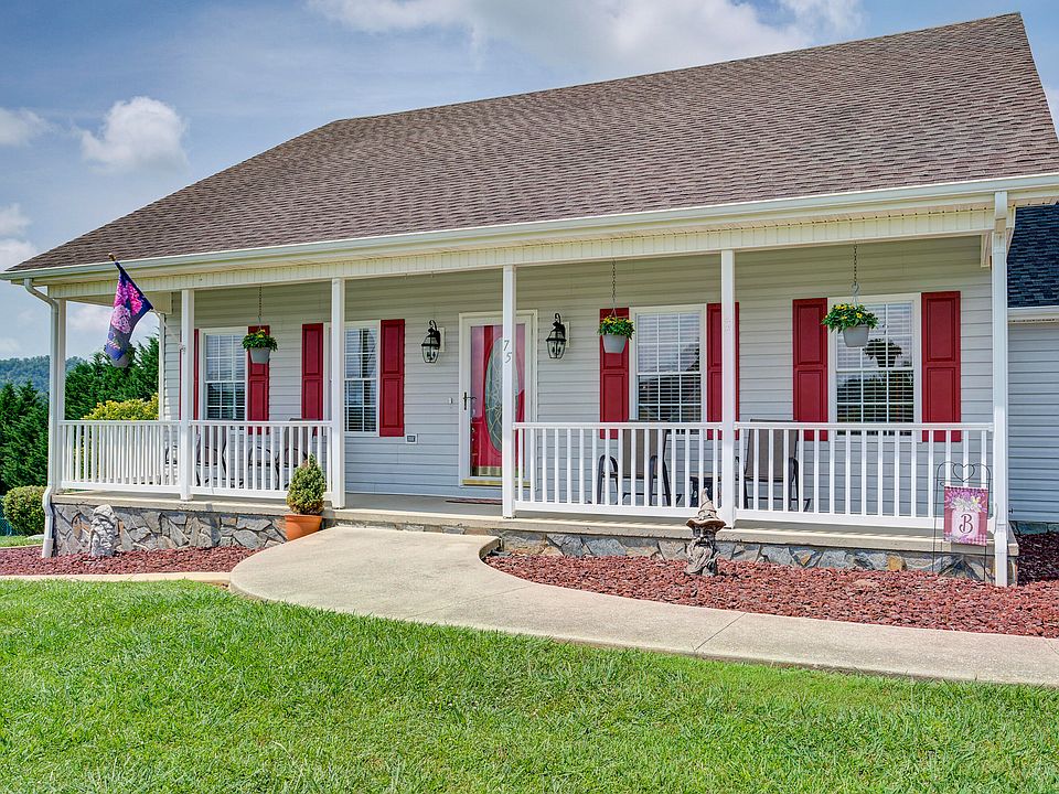 The roof is just over 2 years old, brand new water heater, new awning on the back deck, new storm doors, a year old stove, and more. This .65 +/- acres property has mountain views from every window, a fenced in back yard, and a front porch to sip coffee on, all on a cul de sac minutes from Greeneville or downtown Jonesborough.