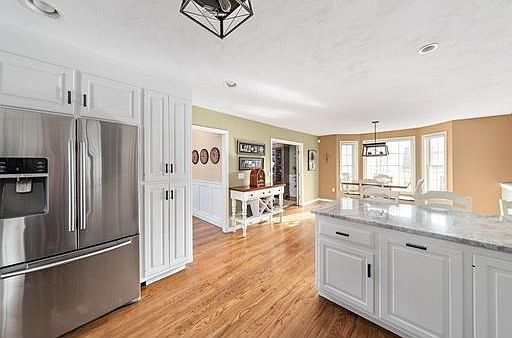 Welcome to 75 Riverside Drive located in the sought after Wampanoag Estates. This turn key center entrance colonial home will impress even the most discerning buyers. Gleaming hardwood floors throughout, 2 story open foyer with hardwood Staircase, 4 generous size bedrooms complete with renovated bathrooms. Dining room with french doors open to the spacious sun drenched newly renovated kitchen, granite and ss appliances. Large family room, cathedral ceiling, and warm inviting fireplace. Family room features sliders which open to screened porch overlooking a breathtaking beautiful flat landscaped yard with custom stoned fire pit and patio views of protected conservation land and stunning sunsets. Perfect for entertaining! Walk out basement, security system, and sprinklers!! Solar panels are leased and will transfer ownership with sale. (ask agent for details). Great location convenient to all schools, major highways and shopping centers. A commuters dream!