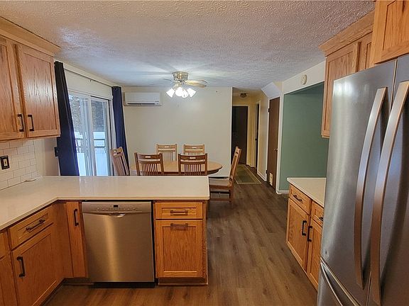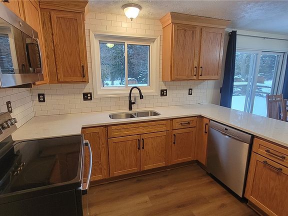 This beautiful Village of Bergen home offers 3 bedrooms and 2 full baths with attached garage. A bonus room on the 2nd floor offers potential as a possible 4th bedroom, office, or additional family room, and a large (dry and full) basement with wood stove (last used in '21) expands your possibilities as well. Large, private yard with above ground pool, deck, and invisible fence. Updates include a new KraftMaid kitchen, new flooring, and new appliances in '22. AC/Heating splits installed 2023, New basement windows '21. Pool was used last in '22 and professionally maintained. Two bedrooms on the first floor and a master suite with whirlpool tub on the 2nd. Sewage system is maintained by the Village of Bergen and pumped approx. every 3 years. Refuse is included in Village taxes. Walking distance to bowling alley, library, pizza shop, bakery, chiropractor, park and many more Village amenities. Delayed Negotiations. Offers due by Monday, January 29th 2024 at 3:00 p.m.