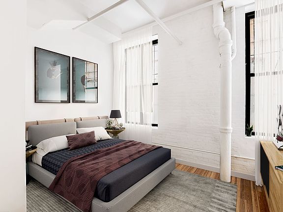 This unit is a two bedroom loft style apartment. This apartment offers a cavernous space with over 11 foot loft ceilings The two bedrooms have large windows with two closets. The living area is flooded with light from the bedroom transoms. Building is in a super prime Williamsburg location. There is free wi-fi and a laundry room included in the building. Pet friendly and a huge roof deck with spectacular views of Manhattan's skyline, one train stop from Manhattan, and a few minutes to the L train. This apartment provides for a great living space in one of the great neighborhoods in Brooklyn.