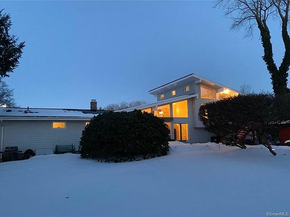 Move into the cherished Stratfield community and enjoy living in this modern contemporary home tucked away on a quiet cul de sac. High quality living space coupled with dramatic open concept design is evident in this completely updated home offering soaring vaulted ceilings and a wall of windows overlooking the picturesque .34 property. Entertaining is a breeze with the updated kitchen, finished playroom in basement and large outdoor patio with retractable awning. Master bedroom suite offers vaulted ceilings, balcony overlooking rear property and a cozy gas fireplace providing a work from home environment that is unmatched. The spa like master bathroom offers a jetted tub and a separate shower coupled with his and her vanities. The perfectly designed suite is finished with a dressing room. This meticulously designed home offers beautiful hardwood floors throughout, 3 beautifully appointed baths to service the 3 bedrooms, zoned gas heat and central air conditioning and irrigation system. You will be thrilled to see the blooming colors come spring. Make this mid century inspired home your dream home. Published square footage does not include finished basement.