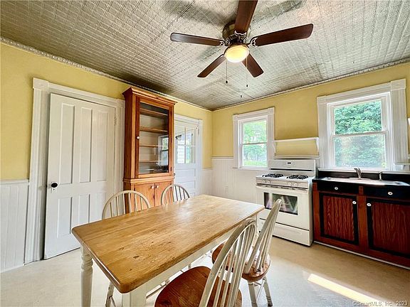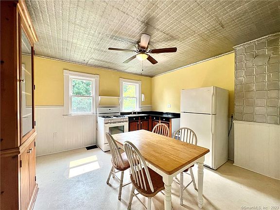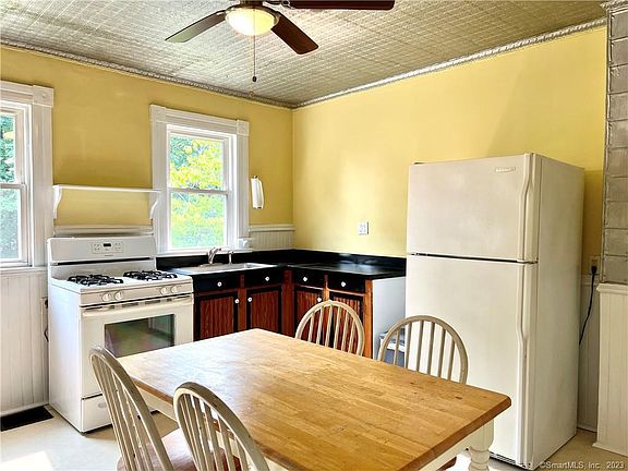 Completely repainted and full of historic charm, welcome to 75 Ruane St. This half duplex is located in Fairfield Center, a minute's walk from downtown Fairfield and all it offers, and just 1.5 miles from Penfield Beach. This unit is full of charm including decorative crown molding wainscoting and the original tin ceiling in the kitchen. This is a 1 or 2-bedroom home depending on your use. The main bedroom is on the upper level, a secondary living space can be used as a second bedroom on the main level. The full bath upstairs is spacious and includes a new vanity and stunning clawfoot tub. The second room upstairs is an excellent space for an office, den, or storage area, but does not have heat. The unfinished basement has room for storage and the dedicated washer and dryer for the unit. Out back, there is a spacious yard for relaxing and entertaining. There is one parking spot in front of the unit on the gravel driveway. No pets, good credit a must.
