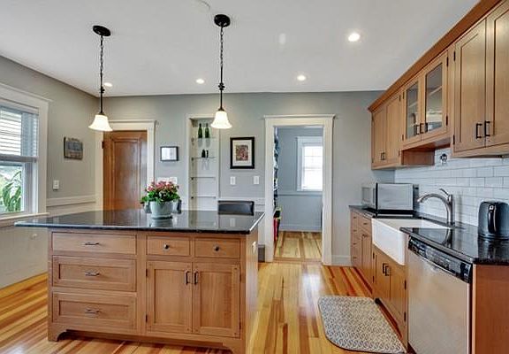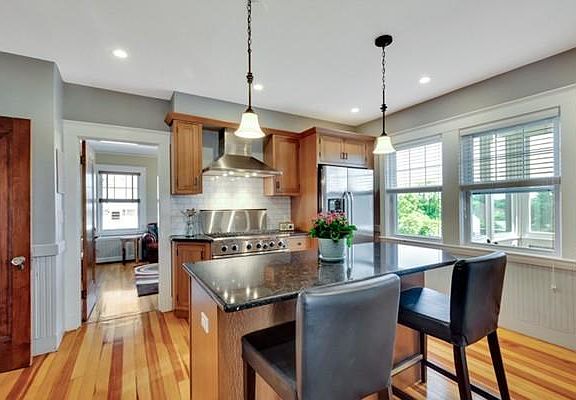 Absolutely stunning home with the size, look and feel of a single family. Offers the best of both worlds with many updates and renovations as well as beautiful period detail. First level: 2014 kitchen renovation includes quartz counter tops, large center island, top of the line cabinetry, a huge pantry with laundry and a beautifully restored unheated, enclosed porch. Family room adjacent to kitchen could be used as a 5th bedroom, Formal dining room with gum wood wainscoting, crown molding and built in china cabinet. Fireplaced living room with built in gum wood bookcases. Bonus room off the living room as well as 4th bedroom and an updated CT bath. 2nd level: 3 generous bedroom and new bath with claw foot soaking tub & skylight, Plenty of storage room in the eaves. New roof, updated Hardy Plank siding, modern windows, blown in insulation. Lovely outdoor space offers a secluded patio, herb and perennial gardens and Japanese Maple. Should be considered by single family shoppers!