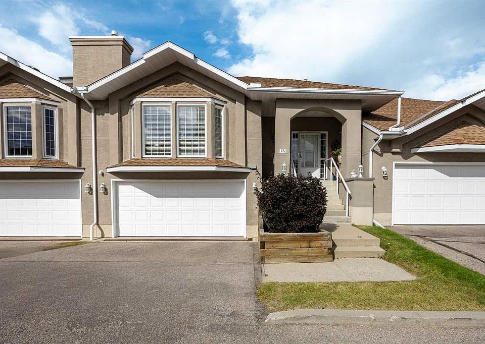 Located in one of the most desirable and quiet spots within Christie Gardens, this 2-bedroom bungalow villa offers over 2,400 sq. ft. of thoughtfully designed living space. Enjoy a private and peaceful setting with mature trees, a secluded backyard, and an upper-level deck perfect for relaxing outdoors. The main floor features Brazilian Tigerwood hardwood flooring, an open-concept living area with soaring vaulted ceilings and skylights, and a modern kitchen with quartz countertops and stainless steel appliances. The primary suite includes a spa-inspired 4-piece ensuite with marble counters, in-floor heating, custom cabinetry, a walk-in closet, and a stunning mosaic-tiled, no-threshold entry shower. A 2-piece powder room and laundry with extra storage complete the main level. The walk-out basement extends your living space with a large rec room, additional bedroom, and a full bathroom with a Jacuzzi soaker tub. This pet-friendly, no-age-restriction complex is ideally located near Sunterra West Market Square, Westhills Towne Centre, Sirocco C-Train Station, Westside Recreation Centre, Strathcona Park pathways, Christie Park tennis and pickleball courts, and top-rated schools including Ernest Manning and Ambrose University. With quick access to downtown and the mountains, this home combines privacy, comfort, and convenience in one of Calgary’s most sought-after communities.