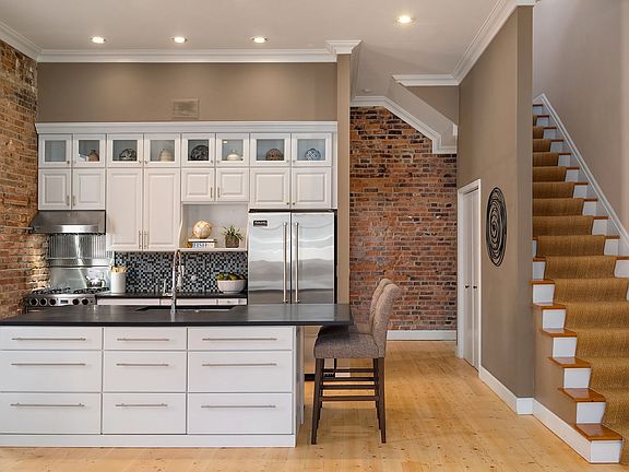 Quintessential LOFT living at its finest. Positioned on the doorstep to the upcoming waterfront park and in the heart of all Pioneer Square offers. This spacious top floor loft home has all of the WOW factor details sought after in a hip, urban condo. 1133sf, 1.75 bathrooms, massive 11foot ceilings, exposed brick walls, freshly refinished pine floors & huge private roof deck. Primary suite upstairs features full bath, work nook, city views & access to patio. Main floor you'll find a contemporary kitchen, stainless appliances, large 3/4 bath, tons of storage and a Murphy bed for guests. Originally built in 1900 the brick facade was preserved & a fully reinforced building replaced the original in 1987. Home comes with one parking and storage.