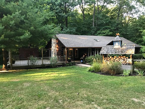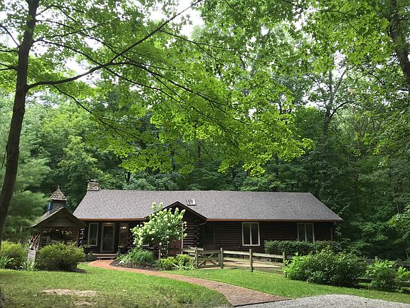 Enjoy the quiet in this beautiful log cabin on 10.13 wooded acres! This wonderful 4 bedroom / 2 bath log cabin is nestled on the rolling hills of Wooded Hills Estates. The cabin boasts an open concept kitchen, dining, and living room; 2 brand new, totally renovated tile bathrooms (with walk-in shower and walk-in closet), and newly finished basement with a recreation room, bedroom, and office. Every room has been meticulously detailed with updated drywall and new trim, paint, and carpet. Other amenities include: Geo-thermal, high-speed internet access, ADT security system, 2 phone lines (for home and office), well or potential city water hookup, chicken coop (for up to 19 chickens), 2 raised garden beds, 2 Dwarf Apple trees (Red Rome, Honey Crisp), wood burning fireplace, 2 car garage and approximately 7 acres of natural unlogged (in the last 12 years) mature forest with fantastic views. This home is move in ready.