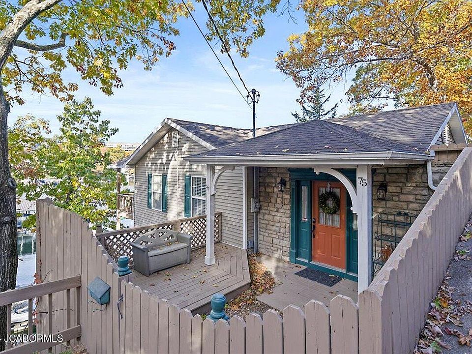 Check out this 3-bed, 3 bath Lake front home located in Ginger Cove of Lake Ozark! This home gives off English cottage vibes with a picket fence gate around the front of the home, quaint courtyard appeal, flat stone walkway, stone veneer chalet entry, large deck w/ a cozy gazebo, mature trees surrounding, terraced stone landscaping, stone fireplace and Dutch door leading into the bunk room. Updates include new furnace, refrigerator, microwave, water heater and new flooring throughout the living/kitchen/hallway. This home is in a protective deep cove location at MM2 and is sold completely turn-key! There is additional parking. Also included is your own personal dock w/ a 12x30 slip with room for expansion! This location is a great place for water play and fishing! As an extra, this home is on community sewer, water and trash. This home functions well for those wanting that perfect vacation home or permanent home! Come see this rare find today and make it yours in time for the holidays!