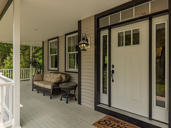 A private, luxury property a short drive to both Portsmouth and Lake Winnipesaukee. Tucked away on a 5+ acre wooded lot, this home is the ideal location for those who want a beautiful, spacious home in a tranquil setting. Upon entering the home, the open layout of the first floor begins with the kitchen, featuring Jenn-Air appliances, granite counters and custom cabinetry. The kitchen flows into the windowed dining area and then onto the living room, which centers around the stone fireplace. On the second floor, the expansive primary bedroom features a bathtub, fireplace, illuminated tray ceilings, radiant floor heat, and two walk-in closets--one of which has a full vanity with sink! Other features include 9ft ceilings, 2nd floor laundry room, 1st floor radiant floor heat, extensive tigerwood flooring and automatic generator. The partially finished basement is a fantastic spot for entertaining, complete with temperature and humidity controlled wine cellar, a quartz-countered kitchenette and half bathroom. With over 600 finished sqft, the 3rd floor is a sky-lit sanctuary flanked with novelty siding that could suit many different uses. The spacious, heated, 3-car garage contains an over-sized bay for toys or other vehicles. If you need relaxation, have a cold beverage on the wraparound farmer’s porch, or unwind in the sauna. Seller is a licensed NH real estate agent.