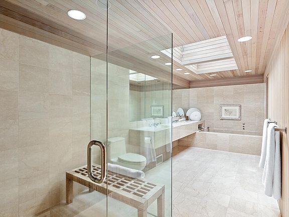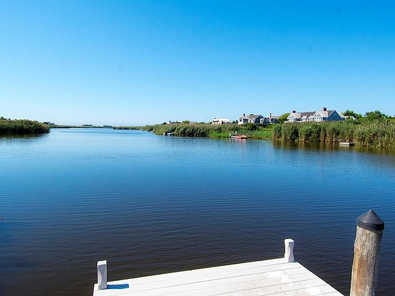 Formerly Norman Jaffe's own home with water-views from every room and just 2 blocks from ocean. Pristine contemporary with five bedrooms, four baths, two living rooms each with a stone fireplace. Gourmet kitchen with granite countertops and stainless appliances. This home has been continually updated with the finest detailing keeping with the original feel of Norman Jaffe. Heated gunite pool, outdoor built in barbeque surrounded by bucolic landscaping and a private dock for water sports on Sam's Creek leading to Mecox Bay and Ocean. By Appointment.