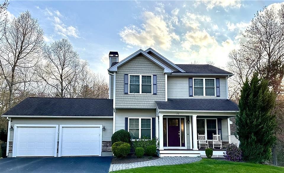 Welcome to your dream home nestled in the picturesque Deer Brook Estates community. Built in 2009, this colonial home exudes warmth and sophistication, offering a perfect blend of character and convenience. Step onto the inviting farmer's porch and admire the meticulously landscaped yard adorned with lush greenery. Entertain in style or unwind in solitude on the expansive stamped concrete back patio and private back deck, surrounded by the serenity of nature. Inside, discover an inviting floor plan, highlighted by a cozy gas fireplace, modern eat-in-kitchen with ample counter space, a formal dining room and a convenient half bath. Retreat to the generously sized primary suite, complete with en-suite bathroom and ample closet space for all your wardrobe needs. Two additional bedrooms plus an additional full bathroom offer comfort and versatility, providing plenty of space for owners, guests or home office setups. The finished walkout lower level offers endless possibilities, whether you desire a home theater, game room, or fitness area. Attached two-car garage, providing convenient access to your home. Central air and natural gas heat. Easy access to Route 4 and shopping and dining options just a short drive away.