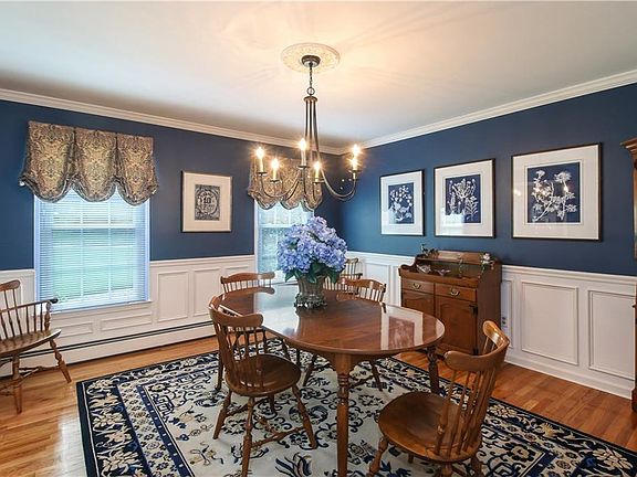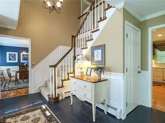This absolutely stunning colonial is located in Whitney Farms golf course community. From the manicured lawn to the meticulously maintained interior, this home is move-in ready. It features a light-filled, two-story foyer, front-to-back living rm, formal dining rm & remodeled eat-in kitchen w/gas fplc. Family rm w/cathedral ceiling & gas fireplace opens to a lovely 3-season sun room w/deck. MBR suite w/new full bath & walk-in closet. Finished LL w/mud rm, exercise rm, office/guest rm w/half bath & rec rm w/sliders to a lovely patio adds additional living area. Hdwd floors, decorative trim, California Closets, C/A, whole-house generator, newer windows & maintenance-free vinyl siding. Enjoy neighborhood events for both children & adults! Updates and improvements include: newer windows, 3-season sun room w/new windows and screens, vinyl siding, decorative trim work, updated baths, California Closets in 2 bedrooms, 4-zone gas HW heating, central air, remodeled kitchen, gas cooktop, vent-less gas fireplace in kitchen, gas fireplace in family room, ceiling fans, 750 SF finished basement consists of 3 rooms plus half bath and storage and mud room, sliders to private patio, whole-house natural gas generator, professionally landscaped yard, storage under 3-season sun room, sprinkler system, drainage system into woods for all gutters, paver walkway, Belgium Block border.