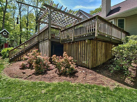 Sophisticated and Spacious describe this 3 bedroom 2.5 bath custom built cape cod situated in the heart of Delaware Water Gap. Sitting on a very private wooded lot this home offers a large eat-in kitchen ,formal dining room,brick fireplace in the living room,hardwood floors and a huge deck with a pergola. Outside sits a magical playhouse which could be used as a studio. Above the 2 car attached garage there is room that could be used as an office,family room or playroom. For additional space there is a storage shed. Public water & sewer,paved driveway and is a commuters dream! Close to shopping & walking distant to restaurants; One block from Appalachian trail. Also included in this sale is an adjacent lot # 04731008974720 . Total taxes & size for both lots $10,263.46 & 1.7 acre