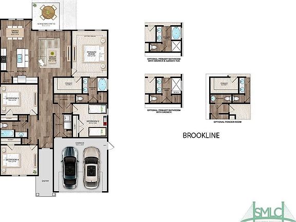 Landmark 24 Homes is proud to offer our Brookline plan with 4 bedrooms and 2.5 bathrooms all on one level.. This home also has some impressive features and upgrades including rounded Bull Nose drywall corners, smooth ceilings, fully sodded and irrigated yard with 4 zone automatic timer, quartz tops in all full bathrooms, covered 12' x 12' back porch with additional 10' x 10' grilling pad, large 6' tile shower with niche in primary bathroom, large undermount Chef Style single bowl sink in kitchen, quartz tops in kitchen with tile backsplash, tile flooring in all wet areas, upgraded gourmet kitchen appliance package with double ovens, drop in cooktop, canopy hood vent, microwave and French Door fridge and upgraded dishwasher. List price reflects all Builder incentives.