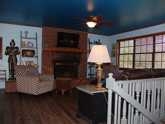 Cute as a button...Split Level Home with 4 Bedrooms, 3.5 Baths in Franklin, NC. This is the MOVE-IN ready home you are looking for! All furniture STAYS! All furnishings STAY! Main level has a GREAT-ROOM with huge BRICK FIREPLACE and hearth. The kitchen has a MASSIVE GRANITE island and adjoining dining area... such a great place for family to gather!!! Moving down the hallway to a bedroom with bunk beds and a hallway bath...and beyond to the Master Bedroom with adjoining Large Bath with Large jetted tub! Large deck and screened porch are off the backside of home with mountain views. Easy stairs to the lower level will find 2 bedrooms and 1.5 baths to the left with another spacious family area which includes another huge BRICK FIREPLACE and hearth...GAME AREA and cozy living area. This home is full of games, puzzles and comfort. There is a large 2 CAR GARAGE behind the home. The yard is gentle and easy walking. Make sure you get to see this easy living 4 Bedroom home. The main level GREAT ROOM measures 27'4"X22'5"
