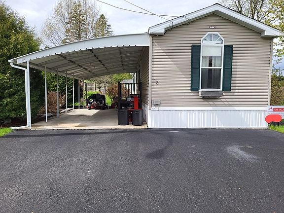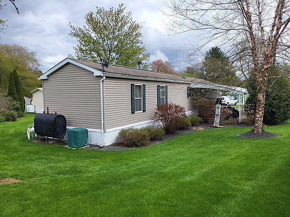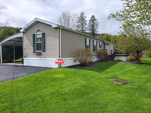 Move in ready Pine Grove Manufactured Home (1998), 14' x 70' in the desirable Bernardston Country Estate Community. It features two bedrooms and two full baths, with the master having an on-suite. New carpet throughout. New two zone Mitsubishi mini-split heat and cooling installed last year. There is a lightly used stacked LG High Efficiency washer and dryer in the laundry room. The carport measures 15’ x 35’, deck measures 12' x 20' and has a Sun Setter awning. Outdoor storage shed 8' x 12'. Mature plantings around the home were professionally installed 5 years ago and easy to maintain.Park maintenance fee is $275/mo., which includes master liability insurance policy, septic, trash removal, plowing of common road and mowing of common areas. Park approval is required prior to tenancy and the listing price includes the $10,300 share price which gives you ownership in the park. Renting is not allowed. Don't delay, these homes go FAST! Sale dose not include the land.
