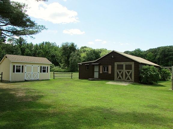 Welcome to Ambling Brook Farm! Nestled on a bucolic 7 acre parcel is this impeccably maintained single-level home. Are you a homesteader, animal enthusiast, or just can't get enough of the great outdoors? This property lends itself beautifully to all of this, with three sturdy outbuildings - a 4 stall barn w/ a workshop and elec service and 2 large sheds. Grassy lawns, gardens, and pasture are ringed by forest and bordered to the South and West by a year-round brook where you can fish and wade. The 1200+ sqft house features two Bedrooms, a full Bathroom, large bright Kitchen with an ample dining area, a cozy Living room and spacious Family room warmed with an efficient pellet stove. All of this is clean, comfortable and easy to heat and maintain. Recent improvements include a new septic system (2011), new well/pump system (2013), new metal roof (over Family room addition), replacement windows, Buderus oil boiler and 200 amp electrical service. Nothing to do but move in and enjoy!