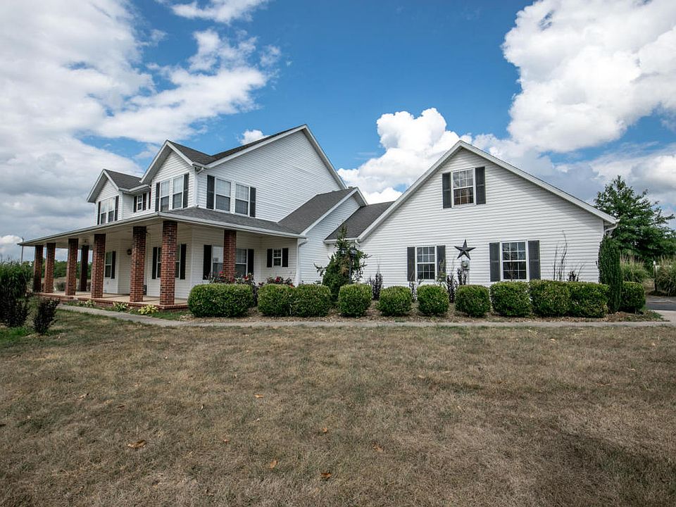 This amazing property offers everything a family would want in a home! With 5 beds/ 4 baths and 3800 square feet, there is room for everyone! The home is situated on almost 5 acres, providing plenty of space for recreation, entertaining, and stunning panoramic views. Enjoy the outdoors with your morning coffee from the wrap around front porch. Enter in and be welcomed by a stunning living space with two story, vaulted ceiling, a fireplace, and windows that fill the space with natural light. There is an adjacent dining room, and an office/5th bedroom with French doors at the front of the home that both feature rich wood floors, also found in the kitchen. The kitchen opens up off the living room, creating a great space to entertain friends and family, (SEE MORE)
