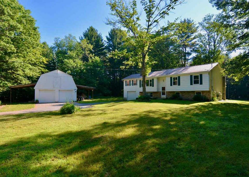 Move right into this meticulously maintained raised ranch! This home has so much to offer, Nestled in approximately a 7 acre lot, with plenty of space to roam. Kitchen walks right out to a large back deck overlooking the private back yard to make entertaining a breeze! Total offered living space is 2,440 boasting 5 bedrooms 2 baths. Other plus' include Newer windows, Carpets, refinished hardwood floors, detached gambrel style garage with 2 carports & amble storage above it, and one car attached garage. This home has everything you have been looking for, call today for a private showing!