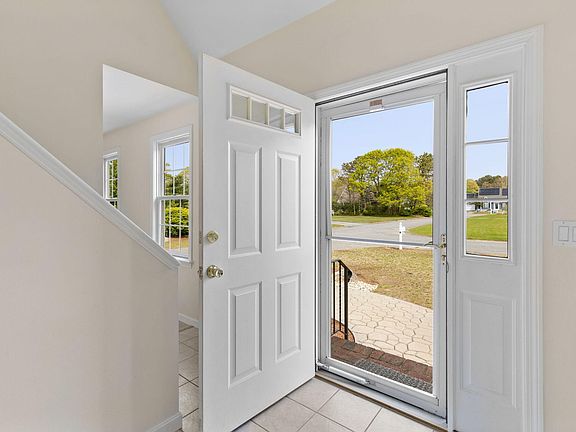 Located on a beautiful cul-de-sac in Falmouth, this Cape style house has everything you need & more. The front entrance offers a stunning vaulted ceiling w/ a wrapped staircase leading to a sitting area with sun pouring through a skylight. Primary bedroom is large with 2 closets plus an en-suite. The second floor has 2 more bedrooms with a shared bath. The first floor has open concept living, dining and kitchen area with sliders that lead to a private deck. The natural toned kitchen has an island and lots of storage space. Bonus room on the 1st floor can be a formal dining, office or play area that sits across the hall from a 1/2 bathroom/ laundry room. The garage comes with a wheel chair ramp as well as more storage. The basement is huge and has potential for conversion into more living space. This home sits perfectly tucked away with a backyard view of untouchable green space to enjoy morning coffee and quiet nights. All of this located in a very sought after neighborhood.