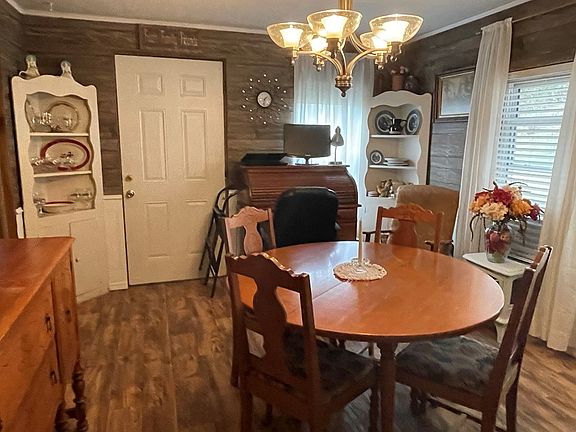 Simple yet charming home with a large covered back deck to enjoy entertaining guest as you relax listening to a babbling creek bordering this property. The spacious kitchen & dining room provide ample space for family & friends. New Heat Pump, metal roof and low maintenance brick exterior make this home easy living. 1 car detached garage and a large back yard to enjoy gardening or family fun.