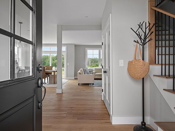 The Foxwood offers an open concept plan that features 9' ceilings, oversized windows, spacious living room with fireplace, beautiful kitchen with quartz counters, SS appliances and tiled backsplash, plus a dining room that leads to outdoor entertaining on the patio. The first floor also offers a mudroom and powder room. On the second floor you will find a spacious primary suite with a custom designed bath that includes double vanities, quartz counters, large tiled shower and a spacious walk-in closet. Two additional generous bedrooms, a full bath with double vanities, laundry room and home office complete this level. Built with the new energy codes this home features an energy efficient build including heat pumps for heating and cooling, blown in insulation, and a dehumidification system.